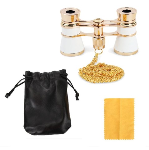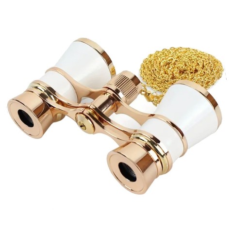 Tělo dalekohledu je vyrobeno v bílé barvě, zatímco kroužky objektivů a okulárů jsou zlaté barvy. Divadelní dalekohled 3x25 je stylový, jednoduše ovladatelný, plně funkční optický přístroj, který může být jedinečným dárkem pro milovníky různých druhů představení a představení. Najde si také své místo jako exkluzivní exponát na stole v kanceláři nebo v obývacím pokoji na komodě nebo regálu.