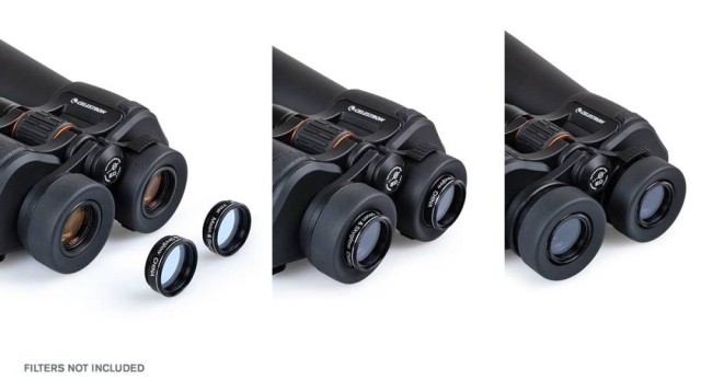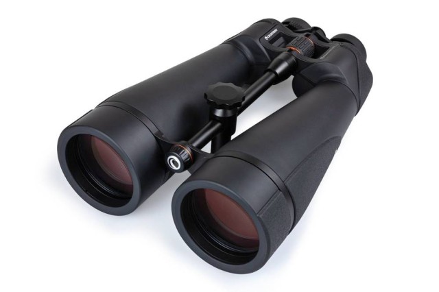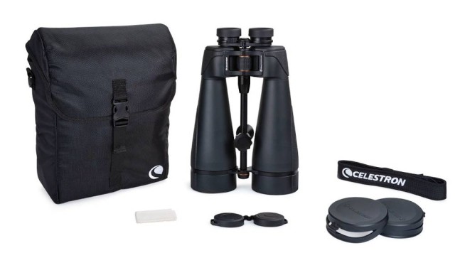 Rozměrem 20x80 tradičně astronomický obří binokulár vyšší řady Celestron SkyMaster ED. Použití ED skel eliminuje barevnou vadu, projevující se barevnými lemy na kontrastních okrajích objektu (typicky Měsíc) nebo namodralým nádechem většiny hvězd.