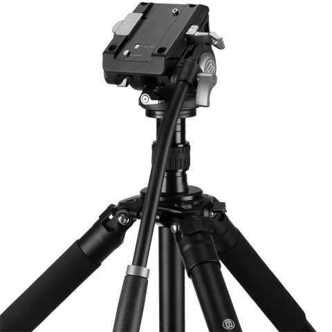 - Fluidní videohlava s hladkým chodem má rozsah 360° horizontálně a +90°/-65° vertikálně a nastavitelný odpor ve svislé ose