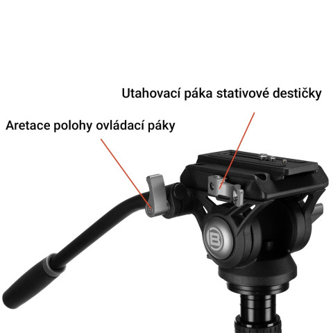 - Dlouhá, celokovová ovládací páka fluidní hlavy umožňuje plynulý pohyb např. při sledování letadel, ptactva apod.