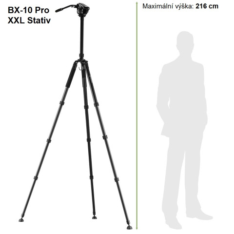 BX-10 Pro je nejnovějším přírůstkem mezi stativy firmy Bresser. Jde o robustní hliníkový stativ s celkovou výškou 216 cm, který je vybaven dvoucestnou videohlavou nabízející jemné ovládání při natáčení díky fluidnímu systému.